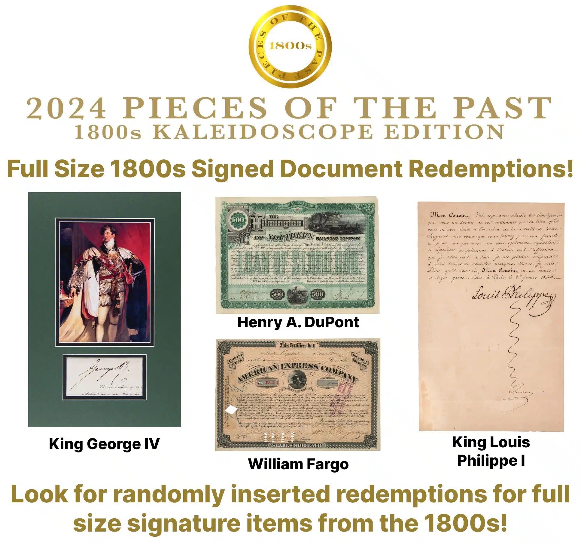 - Look for randomly inserted redemptions for Full Size Signed Items from the 1800s!